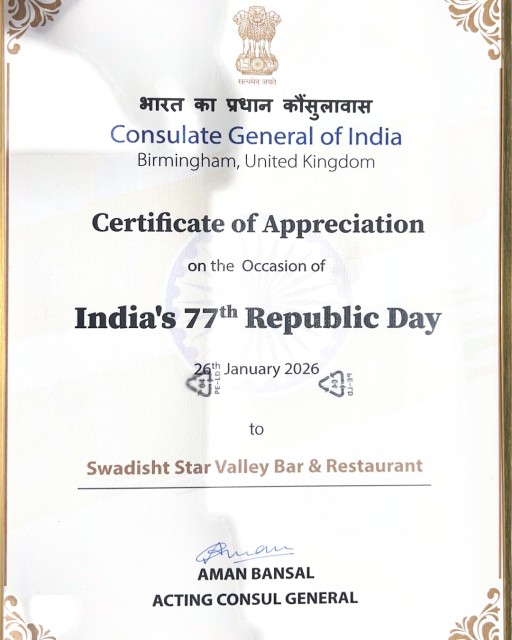 Mr. Shiv Dadhwal started his journey in the hospitality industry in India before successfully moving to the UK. In 2007, he became an Event Manager at Sukhdev’s Catering & Events. By March 2018, he took over Sukhdev’s Catering & Events, keeping the original name while also introducing his own brand, Swadisht Ltd., one of the leading Indian caterers in Birmingham. Today, the company proudly continues its legacy, originally founded in 1980 as Sukhdev’s Catering Services (SCS), now trading as Swadisht Ltd. Thanks to Mr. Shiv Dadhwal’s visionary leadership, Swadisht Ltd earned Britain’s Asian Wedding Award for Catering in the UK in 2020, 2022, 2023, and 2024. In 2022, his achievements were further recognized when he received an invitation to the Queen’s Garden Party, highlighting his excellence and standing in the hospitality industry. After achieving great success in the catering sector, Shiv expanded into the restaurant industry with the launch of Starvalley Bar & Restaurant.